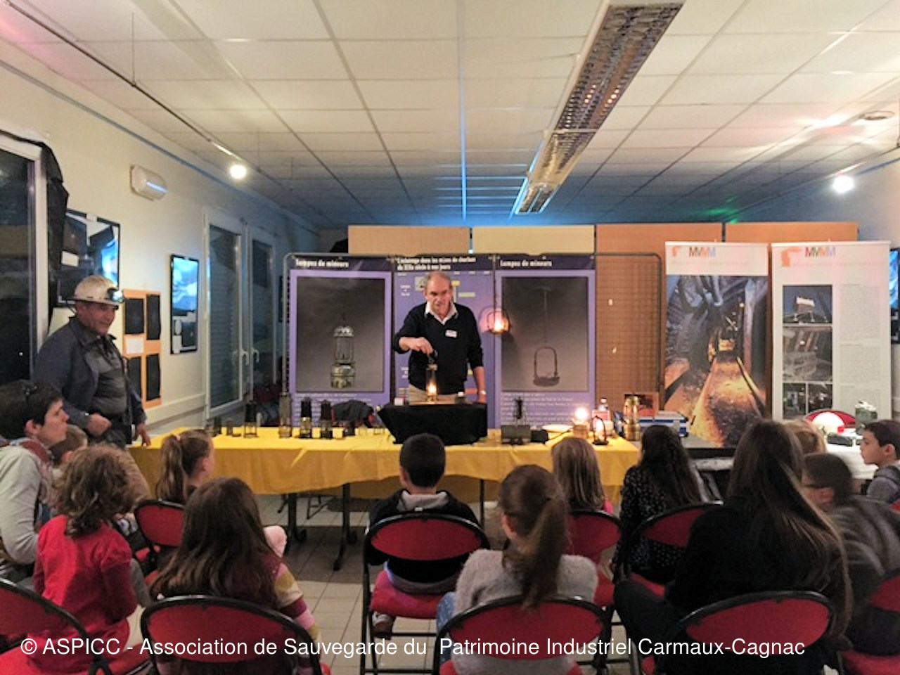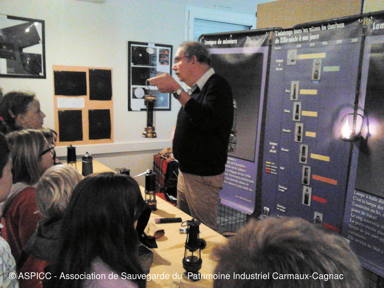 L'ASPICC et ses membres ont animé la fête de la science 2016 à Montredon-Labessonnié (Tarn, France). Michel Raynal et Yannic Béteille accompagné d'un ami de l'ASPIC Jean-Pierre Laur, ont raconté l'histoire de l'éclairage au fond de la mine aux petits enfants ainsi qu'au grands le lond de ces trois journées (photos M. Fabrègue).